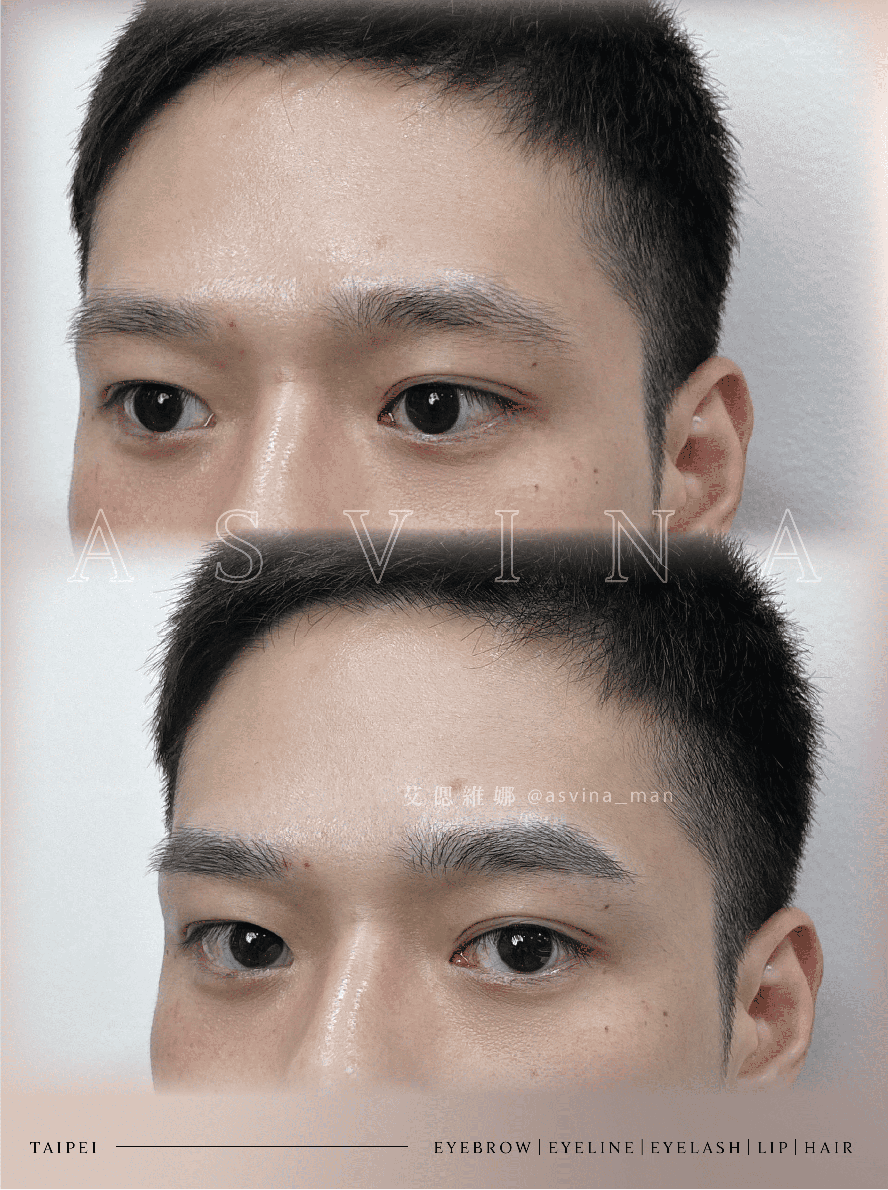 施作後的眉毛不會濃到不自然,而是維持男性該有的厚度與質感,卻又剛好修飾到關鍵細節。眼神因此更集中,臉部輪廓也更緊緻,整體形象成熟而不失自然。